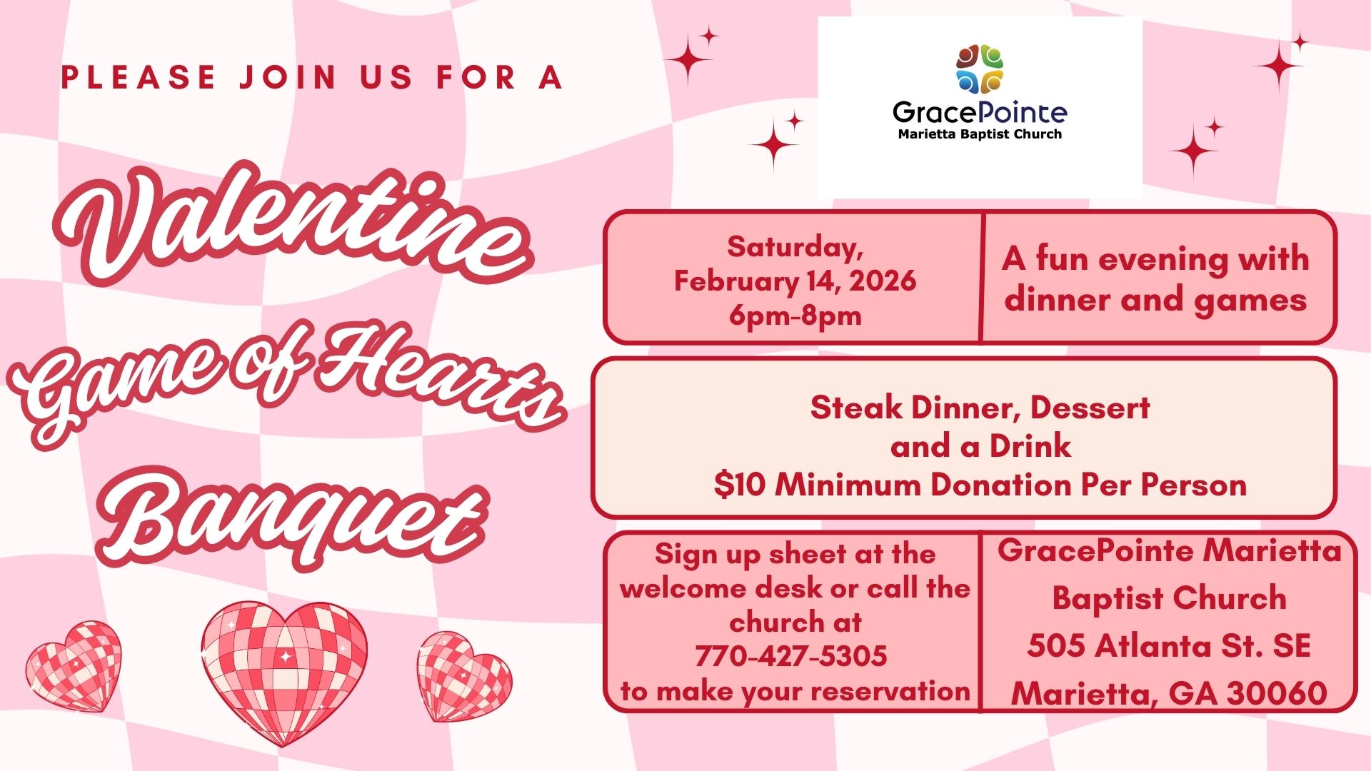 Stay up to date with all of the events going on here at GracePointe Marietta Baptist Church. Have questions about an upcoming event? Contact our team!
